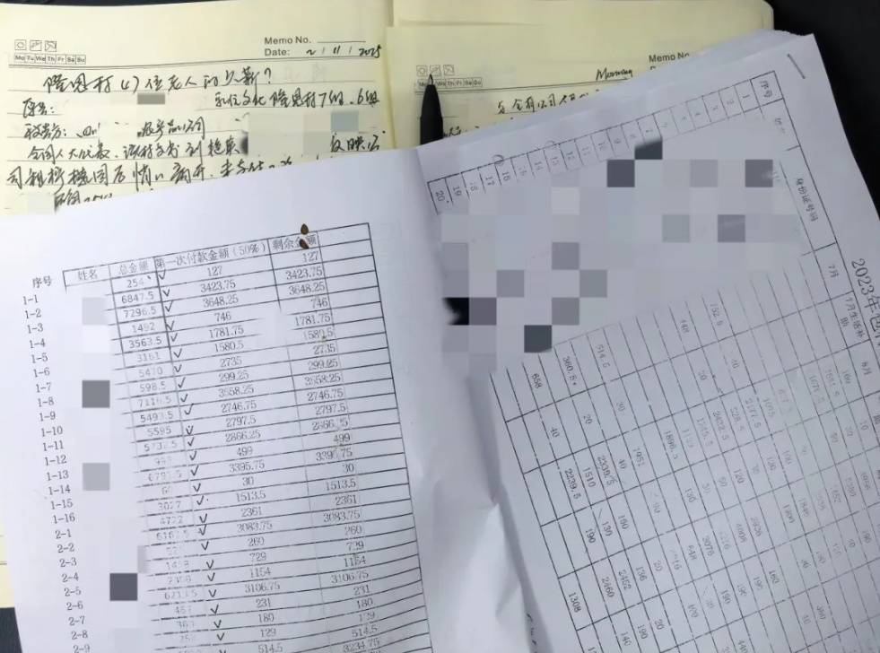 调解中,杨选荣发现老人们缺乏有效维权凭证,有的仅在纸上歪歪扭扭记着工时,有的甚至仅凭记忆。他深知这笔工钱对老人们的重要性,便翻开“调解宝典”,一边倾听一边细致记录,逐一理清每位老人的姓名、工作时长、被欠薪金额,并按诉求重点做好标记。