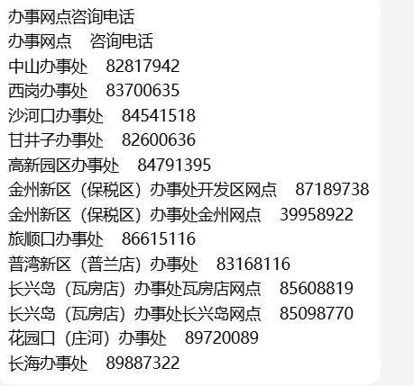 附:大连市住房公积金各办事网点咨询电话